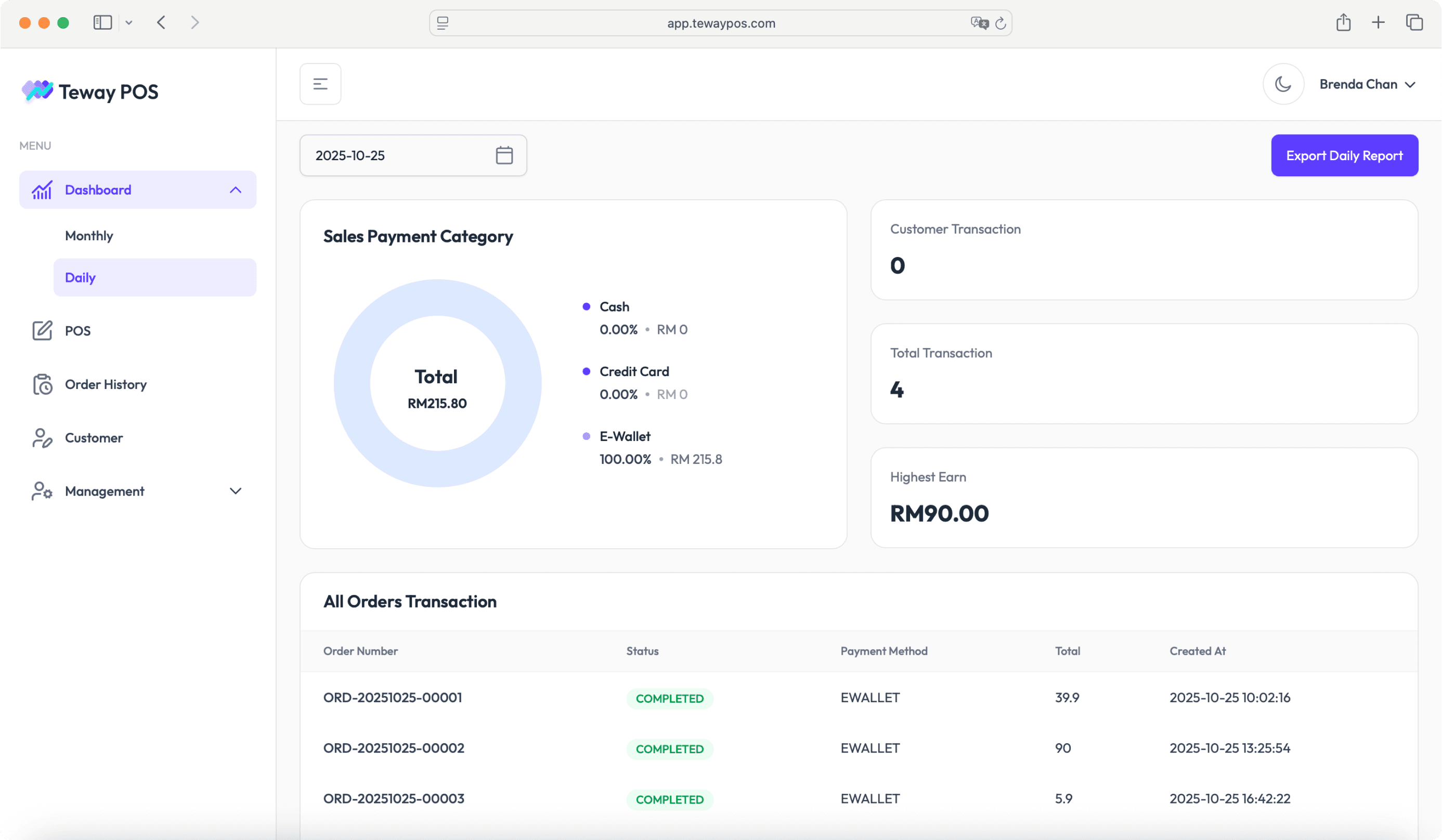Yes, our dashboard shows daily and monthly sales reports. You can download daily sales reports in PDF for your records.